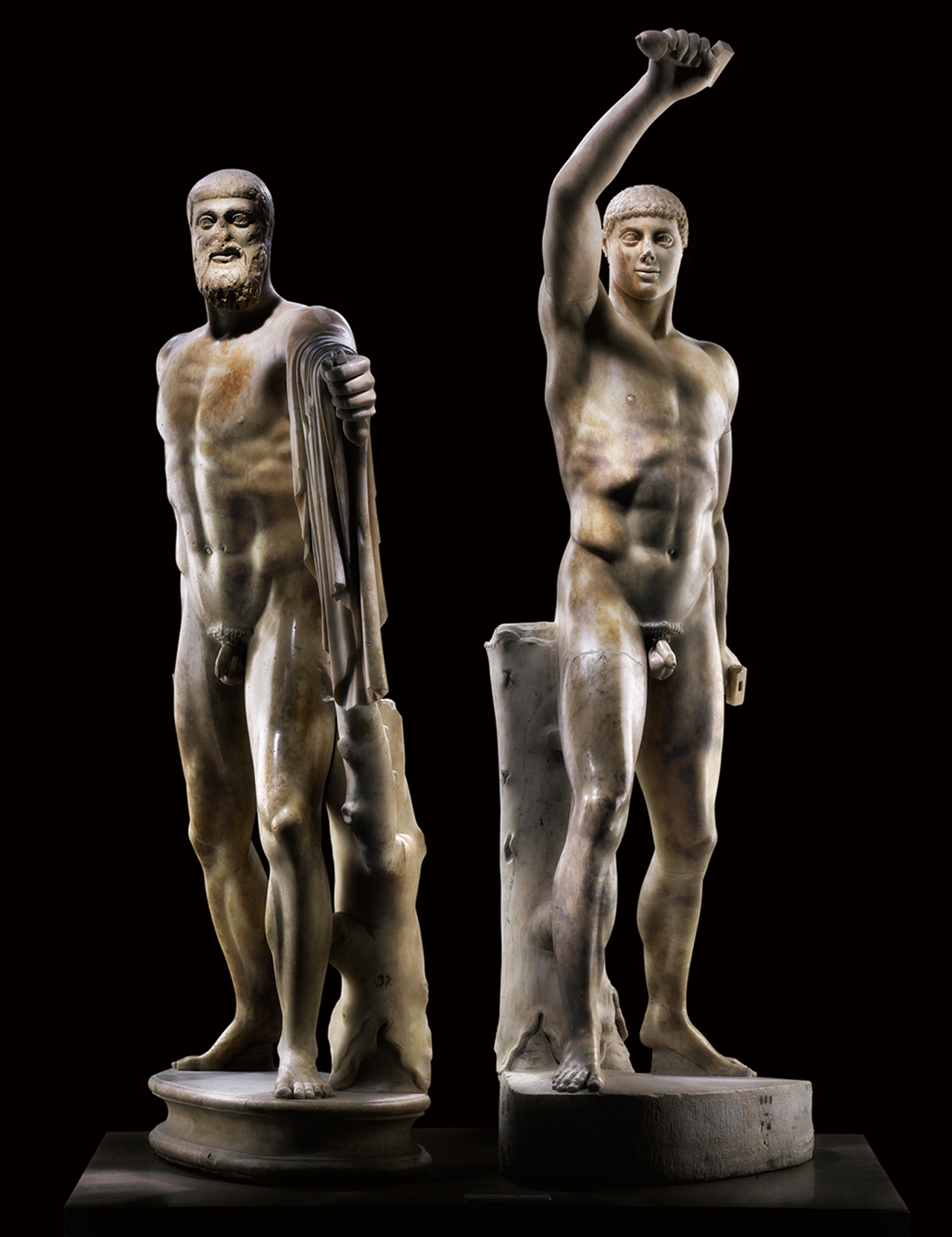 Τα 23 έργα της έκθεσης καλύπτουν ένα διάστημα 4.500 χιλιάδων ετών, από τον κυκλαδικό πολιτισμό της 3ης χιλιετίας π.Χ. έως την Ελλάδα και την Ιταλία του 20ού αιώνα. Αντιπροσωπεύονται οι τρεις μεγάλοι προϊστορικοί πολιτισμοί που αναπτύχθηκαν στο Αιγαίο, ο κυκλαδικός, ο μινωικός και ο μυκηναϊκός. Εμβληματικά έργα του τέλους του 6ου π.Χ. αιώνα, όπως η κόρη από την Ακρόπολη ή ο κρατήρας του Ευφρονίου παρακολουθούν την εξέλιξη της ελληνικής σκέψης και αισθητικής προς την κλασική τελειότητα. Ανάμεσά τους, το ανάγλυφο της «Σκεπτόμενης Αθηνάς» με τη στοχαστική έκφραση γίνεται ιδιαίτερα επίκαιρο στις μέρες μας, καθώς παραπέμπει στο σκεπτικισμό με τον οποίο πρέπει να αντιμετωπίζονται οι σύγχρονες, αμφίσημες, πολιτικές καταστάσεις σε ολόκληρη την Ευρώπη, ενώ το δόρυ της μας υπενθυμίζει ότι πρέπει να επαγρυπνούμε για τη διατήρηση όσων κατακτήθηκαν με τους αγώνες του παρελθόντος. Άλλα έργα αποτελούν εύγλωττες μαρτυρίες της άνθησης του εμπορίου αρχαιοτήτων και της συλλογής έργων τέχνης, τόσο στην αρχαιότητα όσο και στις μέρες μας. Στον ευαίσθητο αυτό τομέα, η Ελλάδα και η Ιταλία πρωτοστατούν και πρωτοπορούν για την πάταξη της αρχαιοκαπηλίας και το «νόστο» των κλεμμένων πολιτιστικών αγαθών στις πατρίδες τους. Η κορυφαία αξία που ο αρχαίος ελληνικός πολιτισμός κληροδότησε στους αιώνες, η δημοκρατία, εκφράζεται στο «Σύνταγμα των Τυραννοκτόνων», το οποίο δίκαια κατέχει κομβική θέση στην έκθεση ως το απόλυτο σύμβολο του αγώνα κατά της τυραννίας, ενώ αποτελεί και το πρώτο μνημείο πολιτικού χαρακτήρα που στήνεται σε δημόσιο χώρο στην Ευρώπη.