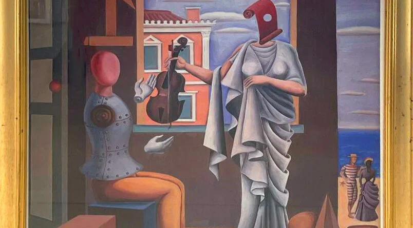 His canvases were filled with men without faces, women in ancient robes, and dreamlike spaces where time stands still. His theatrical background — he designed sets for the National Opera — gave his paintings a dramatic rhythm.