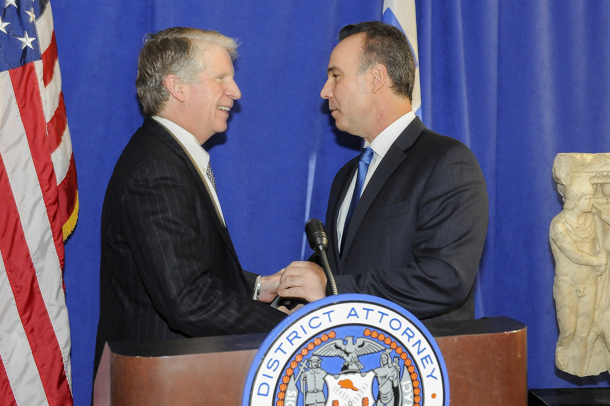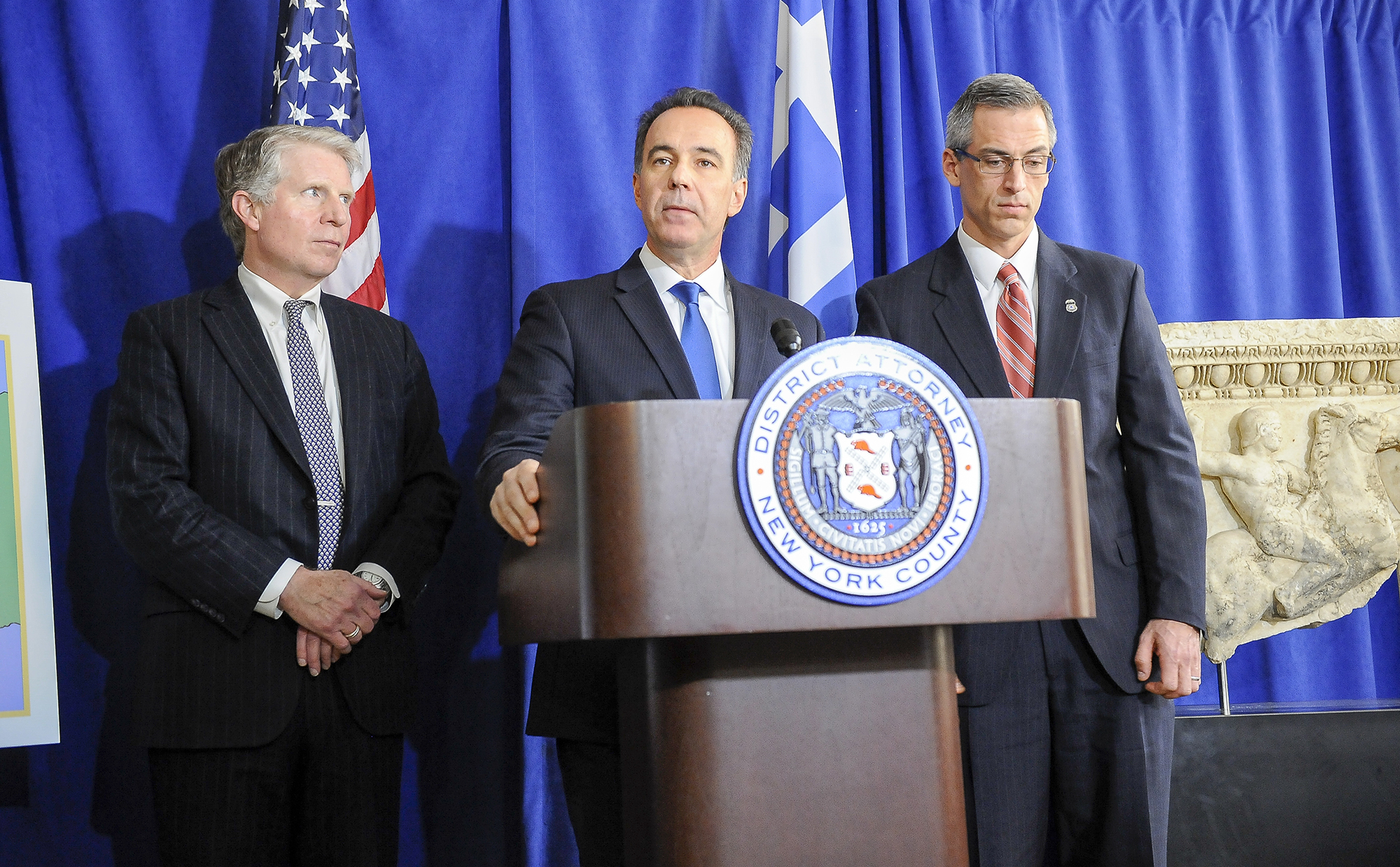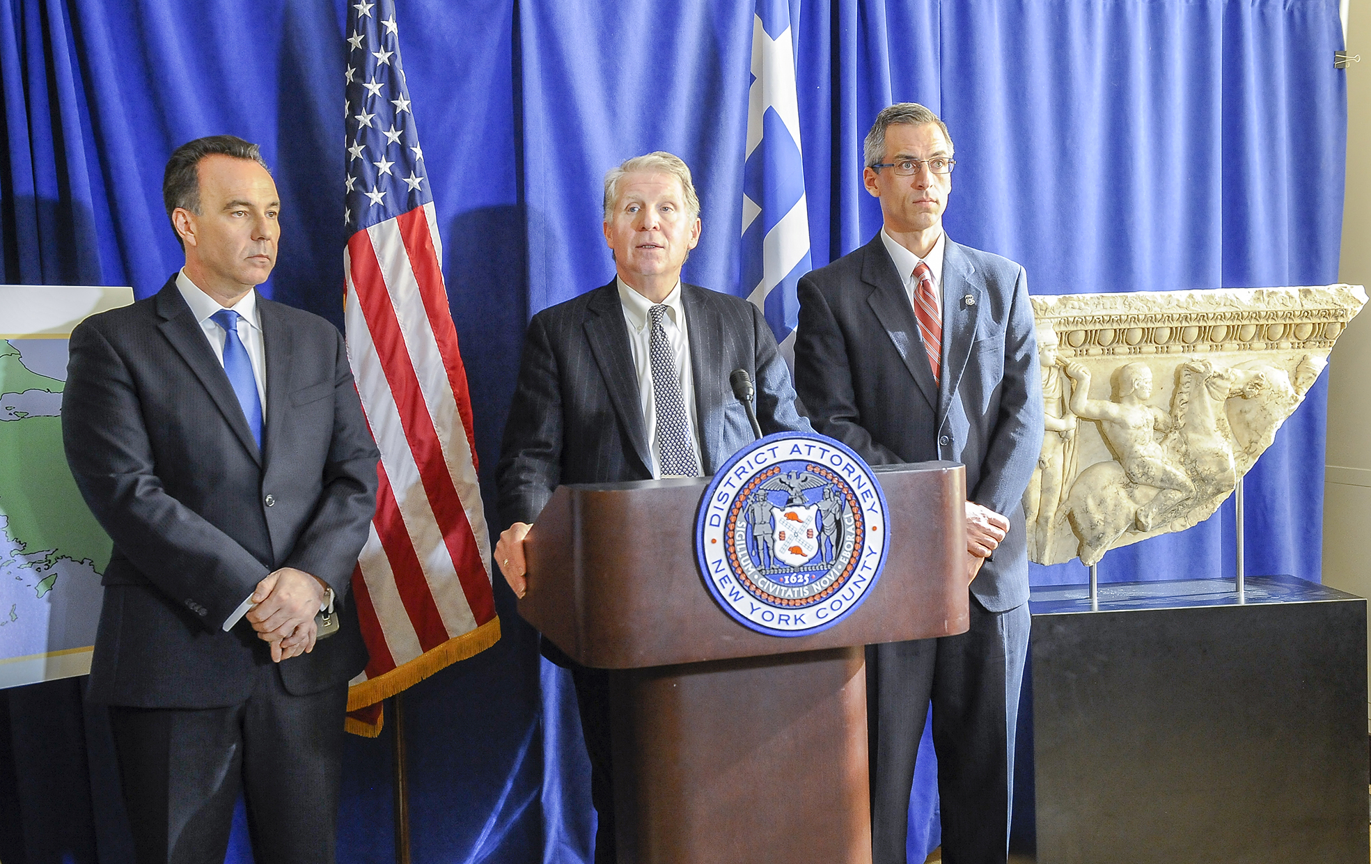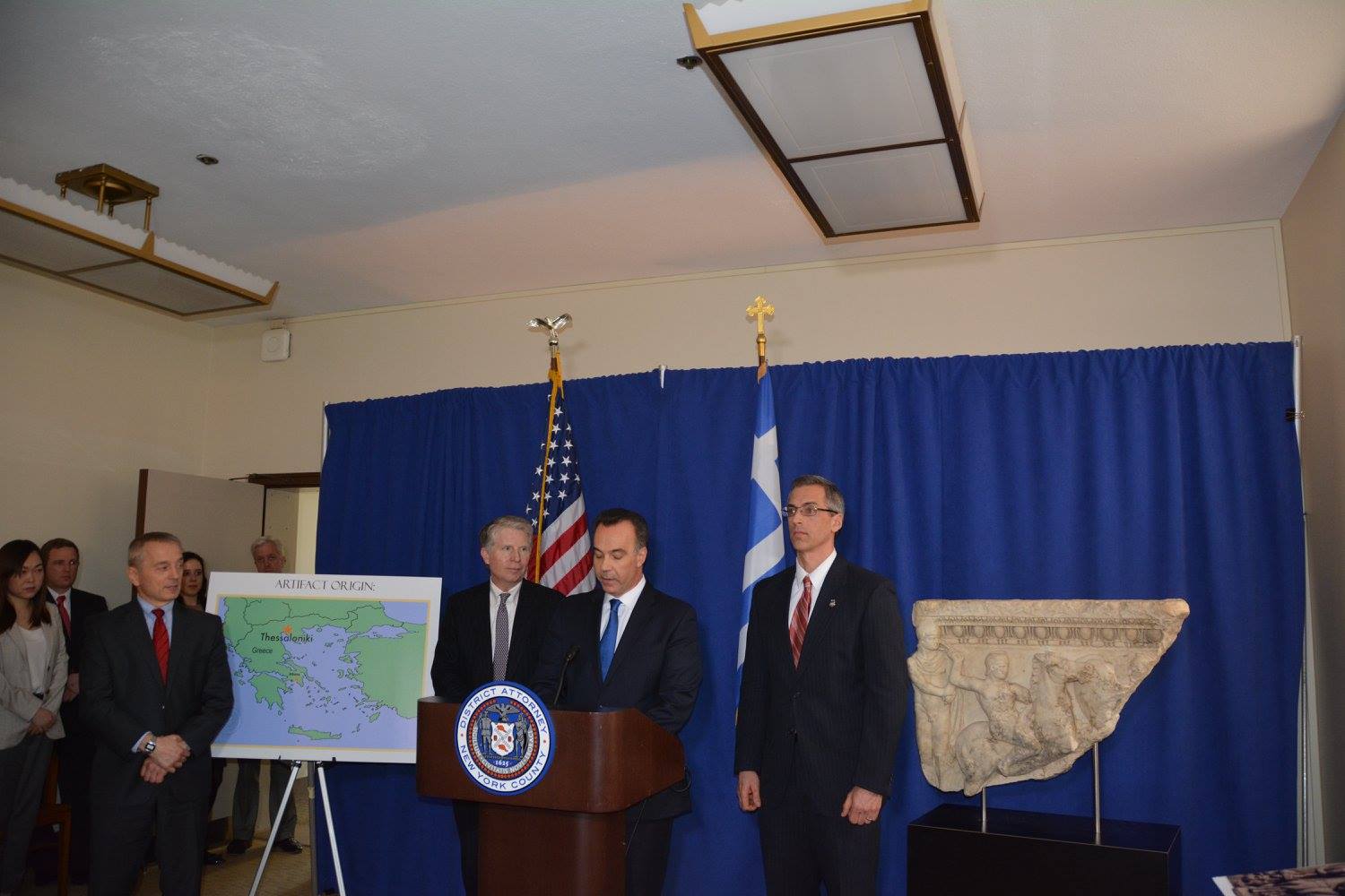 Ο εισαγγελέας του Μανχάταν Σάιρους Βανς Τζούνιορ και ο ομογενής βοηθός εισαγγελέας – έφεδρος συνταγματάρχης, Ματθαίος Μπογδάνος, την Παρασκευή 10 Φεβρουαρίου 2017 παρέδωσαν στον γενικό πρόξενο της Ελλάδας στη Νέα Υόρκη, Κωνσταντίνο Κούτρα, τη μαρμάρινη σαρκοφάγο που προέρχεται από την Ελλάδα και η οποία είχε εξαχθεί παράνομα.