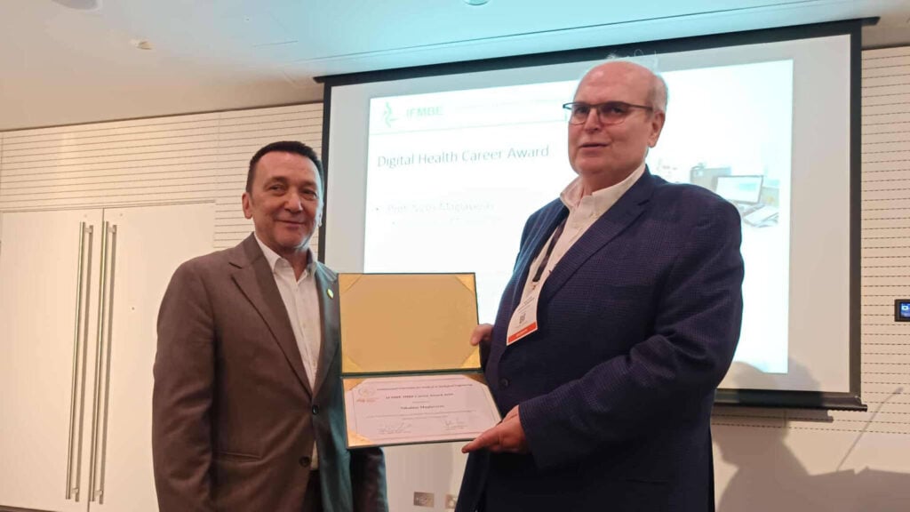 Ο καθηγητής Νίκος Μαγκλαβέρας, μέλος της Ιατρικής Σχολής του Αριστοτελείου Πανεπιστημίου Θεσσαλονίκης και διευθυντής του Εργαστηρίου Ιατρικής Πληροφορικής & Βιοϊατρικής Εικόνας, διακρίθηκε με το Career Award 2025 της IFMBE για το συνολικό του ερευνητικό έργο στον χώρο της ψηφιακής υγείας. Η αναγνώριση αυτή αποδίδει τιμή σε όσους με συνέπεια και επιστημονική αμεσότητα συνδυάζουν τεχνολογία, έρευνα και εκπαίδευση, διαμορφώνοντας το μέλλον της υγείας.