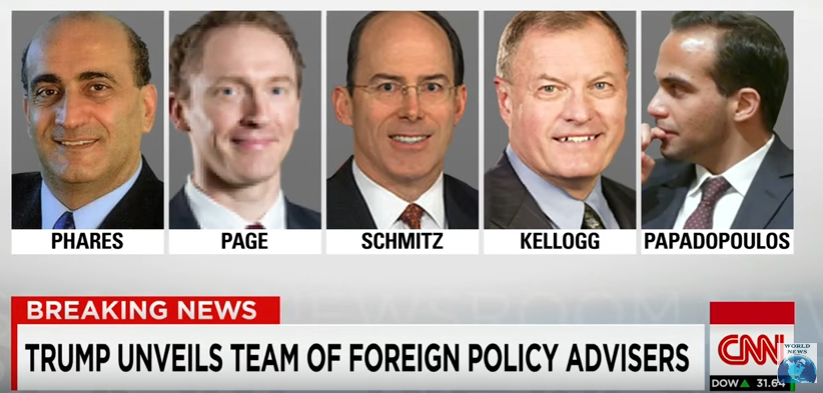 Ο Τζορτζ Παπαδόπουλος είναι σύμβουλος του Τραμπ για θέματα εξωτερικής πολιτικής. Γεννήθηκε στο Σικάγο και οι γονείς του κατάγονται από τη Θεσσαλονίκη. Σπούδασε Πολιτικές Επιστήμες στο DePaul University και το 2010 πήρε τον μεταπτυχιακό τίτλο σπουδών από το University College London. Κατέχει διευθυντική θέση σε εταιρεία στο Λονδίνο που ειδικεύεται σε ζητήματα ενεργειακής πολιτικής, ενώ έχει διατελέσει και ερευνητής του ινστιτούτου Hudson.