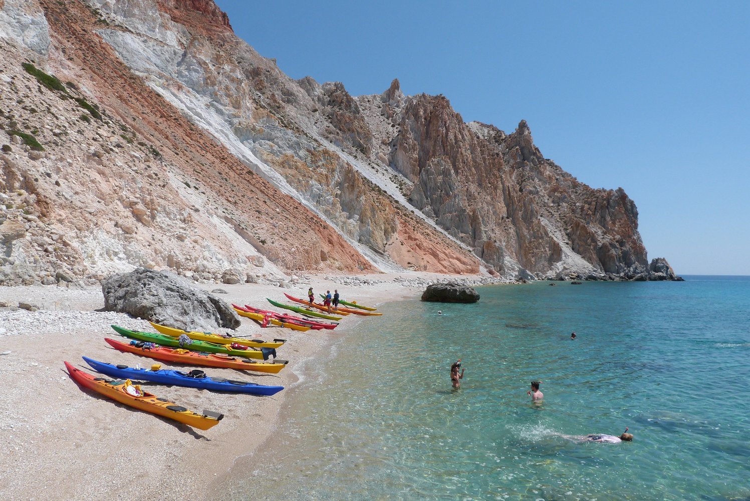 Το ηφαιστειογενές νησί της Μήλου στις Κυκλάδες έχει μια από τις πιο θεαματικές ακτές που θα συναντήσετε, με υπέροχες σπηλιές, απομακρυσμένες παραλίες, όλα σκαλισμένα σε εντυπωσιακούς βράχους. Ένας από τους καλύτερους τρόπους για να εξερευνήσετε όλα αυτά είναι με θαλάσσιο καγιάκ και κωπηλασία σε μέρη που οι δρόμοι απλά δεν μπορούν να φτάσουν. Το νησί προσφέρει επίσης εξαιρετική εμπειρία σε όσους αγαπούν το κολύμπι και την κολύμβηση με αναπνευστήρα.