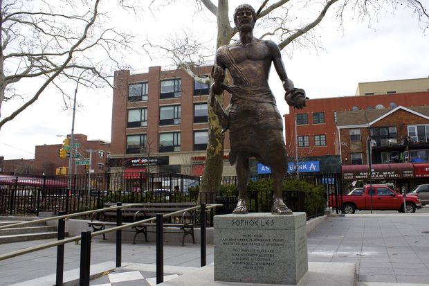Ένα ογκώδες χάλκινο άγαλμα του Σοφοκλή εγκαταστάθηκε στο Πάρκο Αθηνών στην Αστόρια. Πρόκειται για το τελευταίο άγαλμα που θα προστεθεί στη συλλογή του πάρκου.