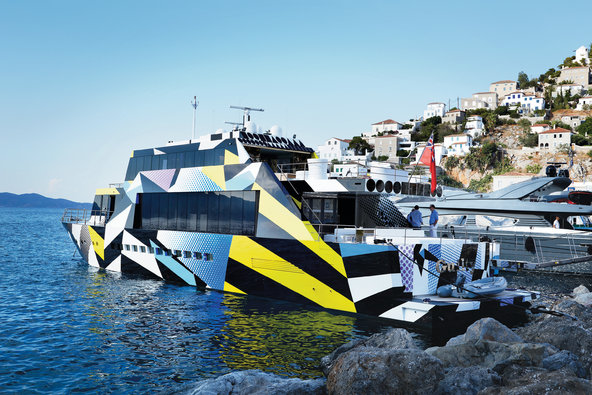 Πέρασα στην Ύδρα λίγες μόνο ημέρες το περασμένο καλοκαίρι, όταν ένα εκπληκτικό πλοίο κατέπλευσε στο λιμάνι. Διαμορφωμένο σαν ένα μαχητικό stealth με φωτεινά χρώματα και κινούμενα σχέδια, το Guilty είναι το ιδιωτικό γιοτ του δισεκατομμυριούχου ελληνικής καταγωγής συλλέκτη έργων τέχνης Δάκη Ιωάννου. Ο Δάκης, όπως οι Υδριώτες τον αποκαλούν, είναι Κύπριος και ένας από τους πιο διάσημους άνδρες σε αυτό το μέρος του Αιγαίου. Πριν από έξι χρόνια άνοιξε ένα ιδιωτικό μουσείο Σύγχρονης Τέχνης σε ένα παλιό σφαγείο στο νησί. Την ίδια χρονιά ο Jeff Koons είχε σχεδιάσει ένα σύστημα βαφής για να διακοσμήσει το γιοτ του, το οποίο πλέει διακριτικά ως ένα έργο τέχνης που επιπλέει στο λιμάνι της Ύδρας κάθε καλοκαίρι.